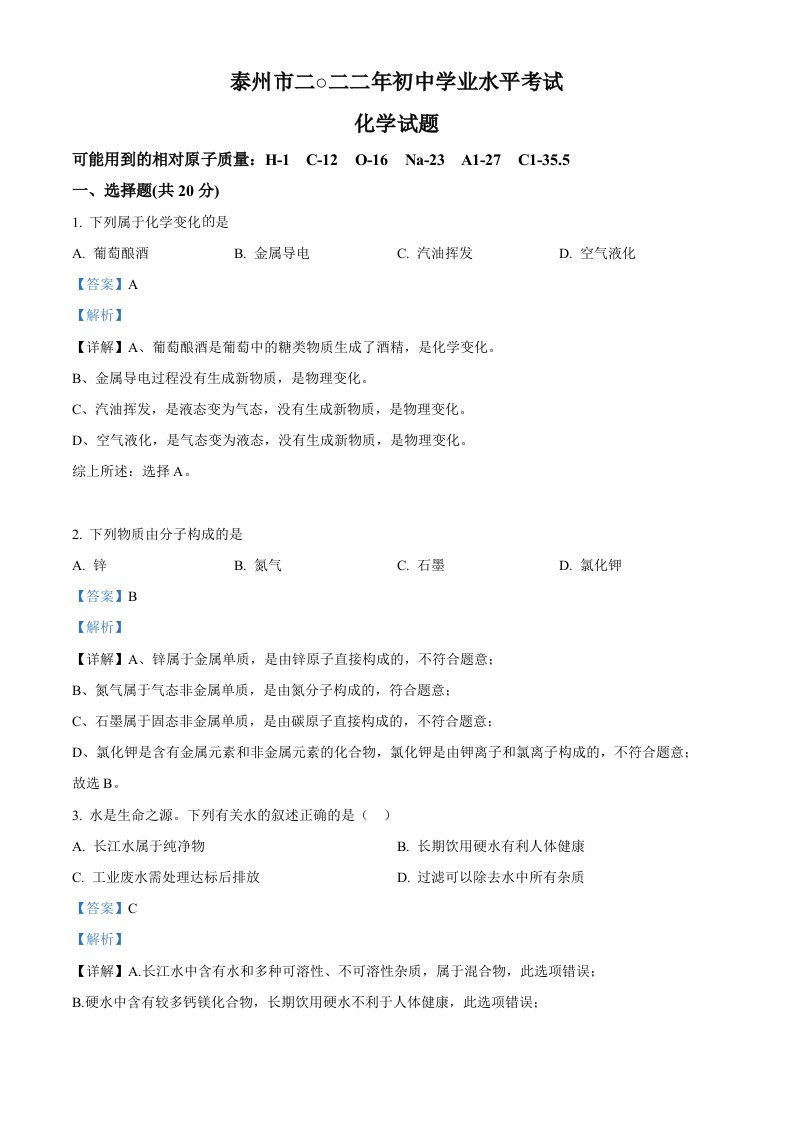 当前位置: 首页初中资源中考真题正文 2022年江苏省泰州市中考化学真题(含答案)_共16页 中考真题 2 周前 0 0 10 以上为部分内容预览,如需源文档请登录您的会员账号进行下载! 声明:本站所有文章,如无特殊说明或标注,均为本站原创发布。任何个人或组织,在未征得本站同意时,禁止复制、盗用、采集、发布本站内容到任何网站、书籍等各类媒体平台。如若本站内容侵犯了原著者的合法权益,可联系我们进行处理。 尚学资源永久会员 打赏 收藏 海报 链接