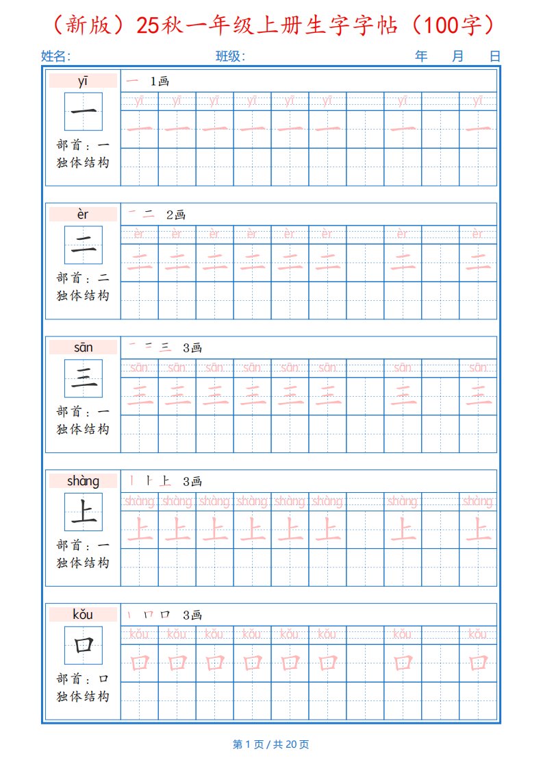 当前位置: 首页小学资源小学一年级正文 (新版)25秋一年级上册语文生字字帖(100字)_共20页 小学一年级 2 周前 0 0 10 以上为部分内容预览,如需源文档请登录您的会员账号进行下载! 声明:本站所有文章,如无特殊说明或标注,均为本站原创发布。任何个人或组织,在未征得本站同意时,禁止复制、盗用、采集、发布本站内容到任何网站、书籍等各类媒体平台。如若本站内容侵犯了原著者的合法权益,可联系我们进行处理。 尚学资源永久会员 打赏 收藏 海报 链接