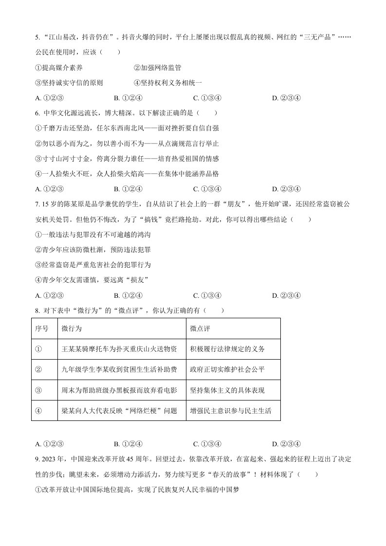 2023年四川省遂宁市中考道德与法治真题(空白卷)_共7页
