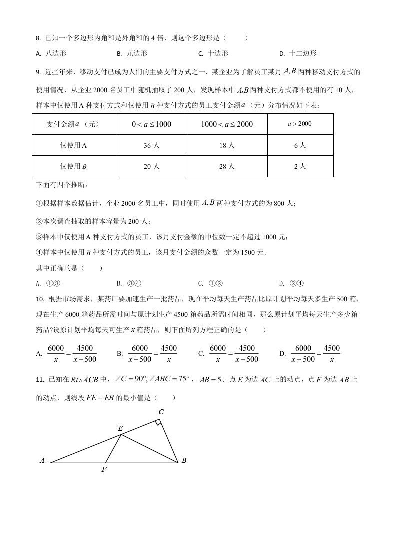 黑龙江省绥化市2021年中考数学真题试卷(空白卷)_共9页