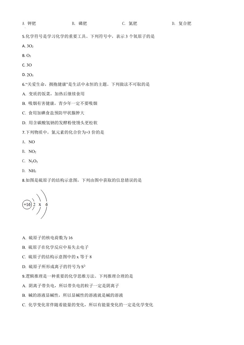 湖北省襄阳市2020年中考化学试题(空白卷)_共7页