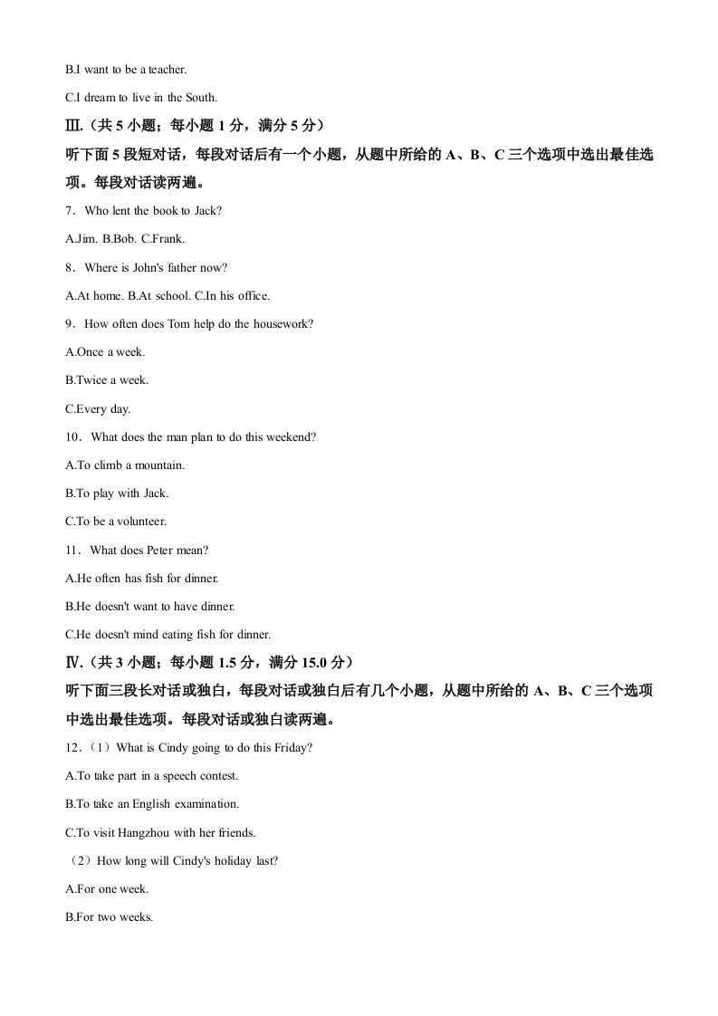 山东省烟台市2021年中考英语试题(空白卷)_共14页