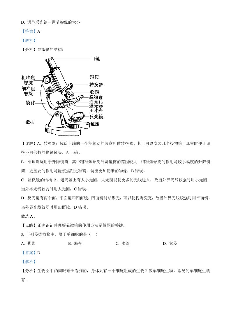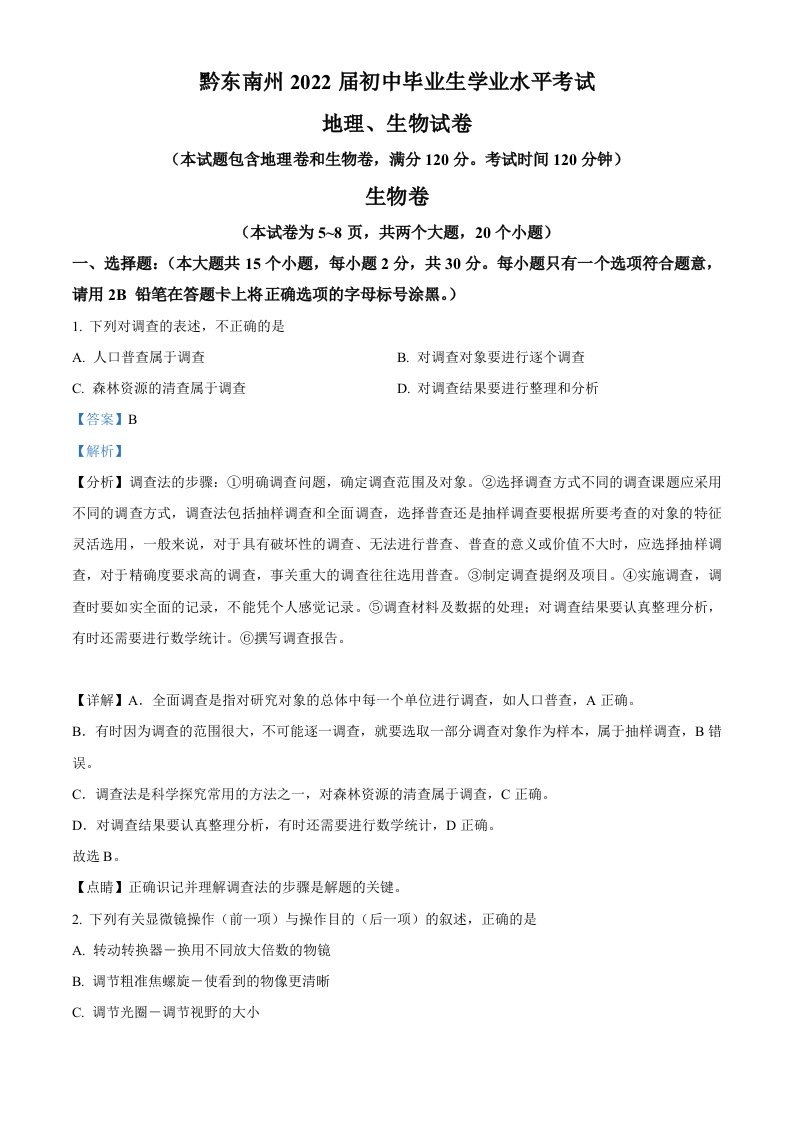 贵州省黔东南州2021年中考生物试题(含答案)_共14页