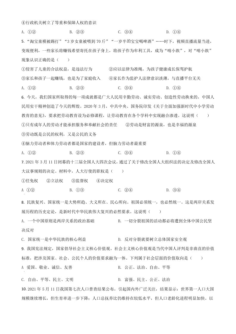 当前位置: 首页初中资源中考真题正文 贵州省铜仁市2021年中考道德与法治真题(空白卷)_共5页 中考真题 2 周前 0 0 5 以上为部分内容预览,如需源文档请登录您的会员账号进行下载! 声明:本站所有文章,如无特殊说明或标注,均为本站原创发布。任何个人或组织,在未征得本站同意时,禁止复制、盗用、采集、发布本站内容到任何网站、书籍等各类媒体平台。如若本站内容侵犯了原著者的合法权益,可联系我们进行处理。 尚学资源永久会员 打赏 收藏 海报 链接
