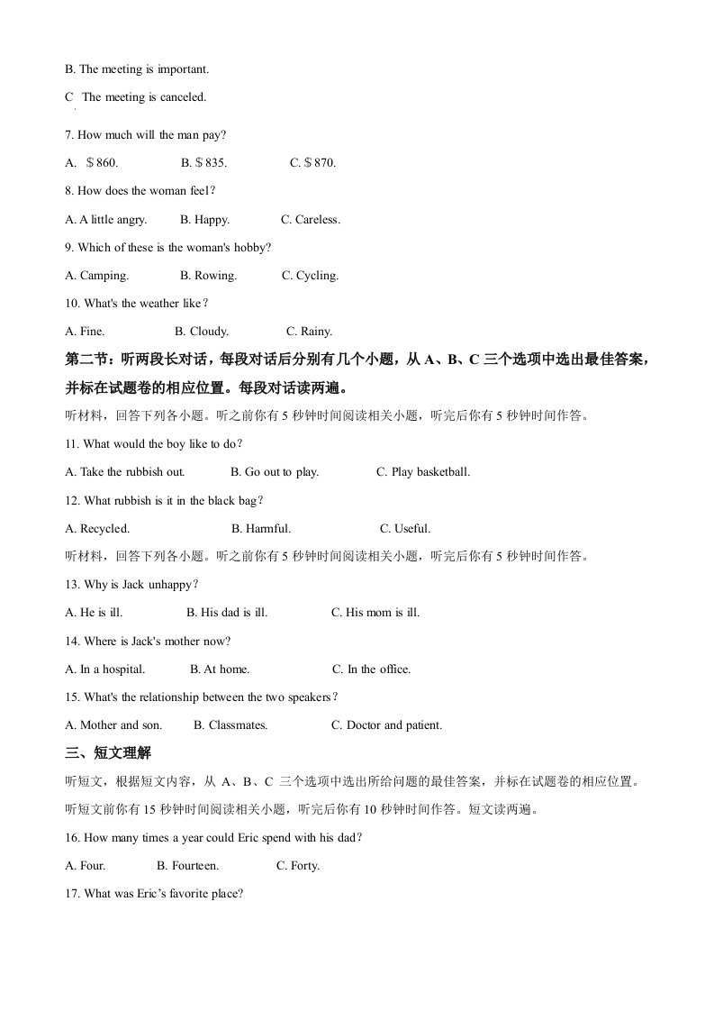 当前位置: 首页初中资源中考真题正文 湖北省恩施州2020年中考英语试题(含答案)_共20页 中考真题 2 周前 0 0 10 以上为部分内容预览,如需源文档请登录您的会员账号进行下载! 声明:本站所有文章,如无特殊说明或标注,均为本站原创发布。任何个人或组织,在未征得本站同意时,禁止复制、盗用、采集、发布本站内容到任何网站、书籍等各类媒体平台。如若本站内容侵犯了原著者的合法权益,可联系我们进行处理。 尚学资源永久会员 打赏 收藏 海报 链接