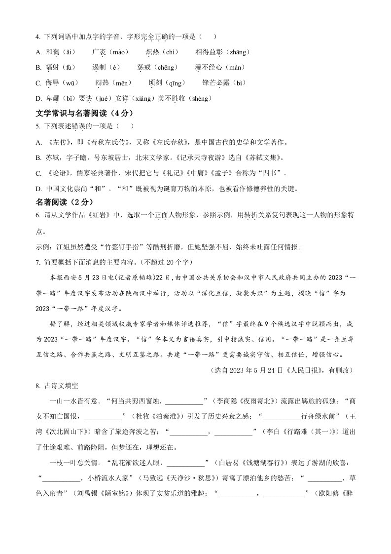 当前位置: 首页初中资源中考真题正文 2023年辽宁省营口市中考语文真题(空白卷)_共11页 中考真题 2 周前 0 0 10 以上为部分内容预览,如需源文档请登录您的会员账号进行下载! 声明:本站所有文章,如无特殊说明或标注,均为本站原创发布。任何个人或组织,在未征得本站同意时,禁止复制、盗用、采集、发布本站内容到任何网站、书籍等各类媒体平台。如若本站内容侵犯了原著者的合法权益,可联系我们进行处理。 尚学资源永久会员 打赏 收藏 海报 链接
