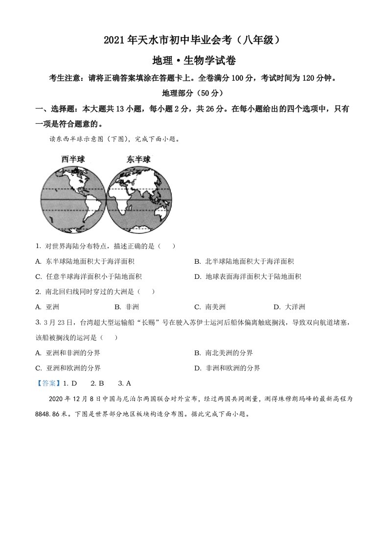 当前位置: 首页初中资源中考真题正文 甘肃省天水市2021年中考地理真题及答案_共7页 中考真题 2 周前 0 0 5 以上为部分内容预览,如需源文档请登录您的会员账号进行下载! 声明:本站所有文章,如无特殊说明或标注,均为本站原创发布。任何个人或组织,在未征得本站同意时,禁止复制、盗用、采集、发布本站内容到任何网站、书籍等各类媒体平台。如若本站内容侵犯了原著者的合法权益,可联系我们进行处理。 尚学资源永久会员 打赏 收藏 海报 链接