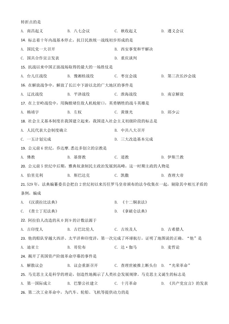 黑龙江省绥化市2021年中考历史试题(空白卷)_共6页