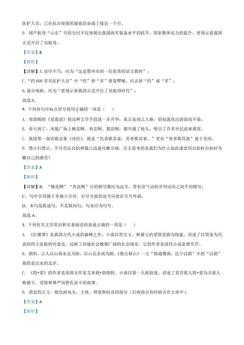 当前位置: 首页初中资源中考真题正文 湖北省鄂州市2020年中考语文试题(含答案)_共17页 中考真题 2 周前 0 0 10 以上为部分内容预览,如需源文档请登录您的会员账号进行下载! 声明:本站所有文章,如无特殊说明或标注,均为本站原创发布。任何个人或组织,在未征得本站同意时,禁止复制、盗用、采集、发布本站内容到任何网站、书籍等各类媒体平台。如若本站内容侵犯了原著者的合法权益,可联系我们进行处理。 尚学资源永久会员 打赏 收藏 海报 链接