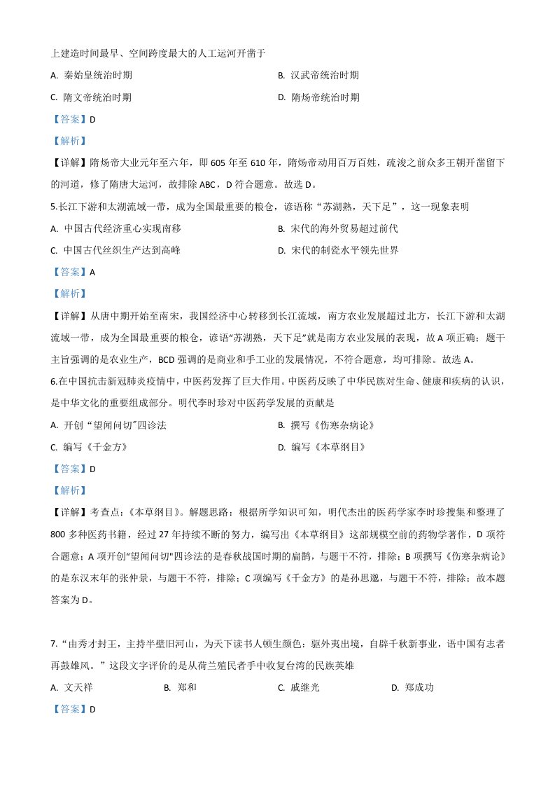 湖北省宜昌市2020年中考历史试题(含答案)_共13页