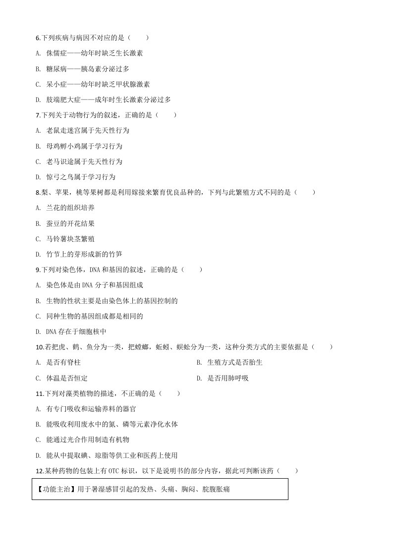 青海省2020年中考生物试题(空白卷)_共7页