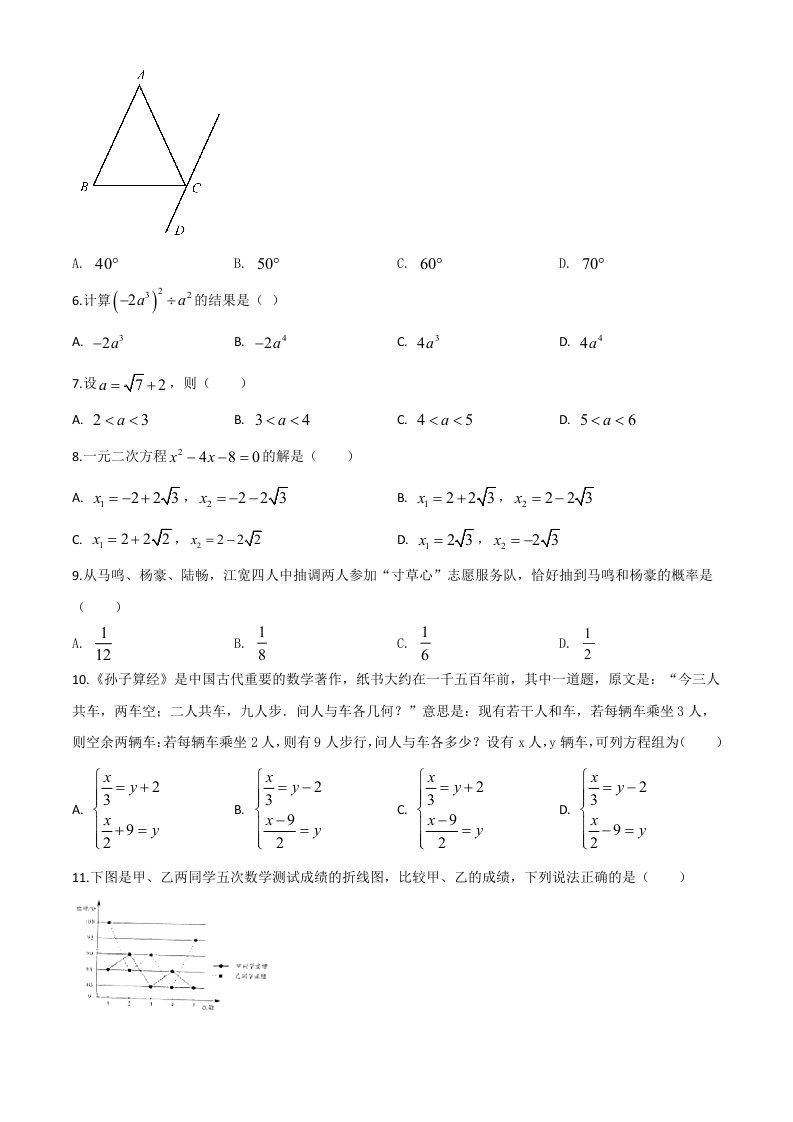 山东省临沂市2020年中考数学真题(空白卷)_共8页