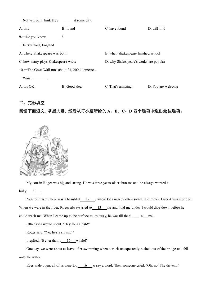 当前位置: 首页初中资源中考真题正文 浙江省温州市2020年中考英语试题(空白卷)_共11页 中考真题 2 周前 0 0 10 以上为部分内容预览,如需源文档请登录您的会员账号进行下载! 声明:本站所有文章,如无特殊说明或标注,均为本站原创发布。任何个人或组织,在未征得本站同意时,禁止复制、盗用、采集、发布本站内容到任何网站、书籍等各类媒体平台。如若本站内容侵犯了原著者的合法权益,可联系我们进行处理。 尚学资源永久会员 打赏 收藏 海报 链接