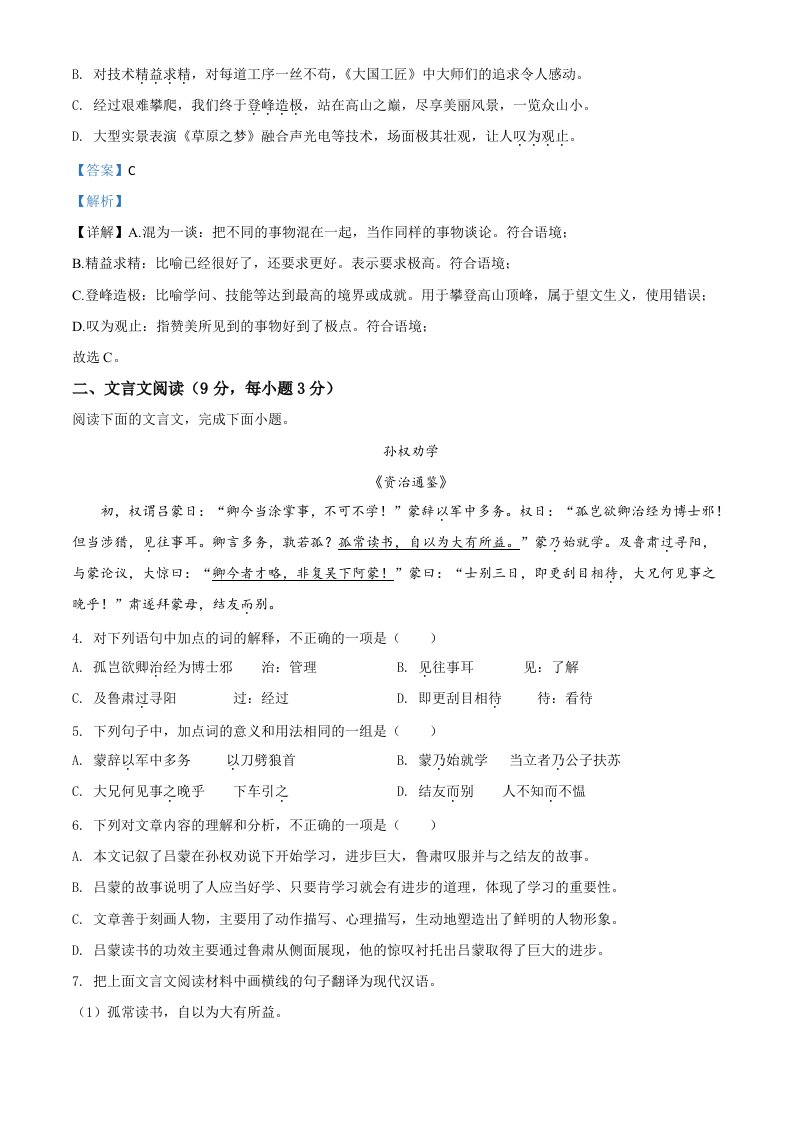 四川省甘孜州2020年中考语文试题(含答案)_共16页