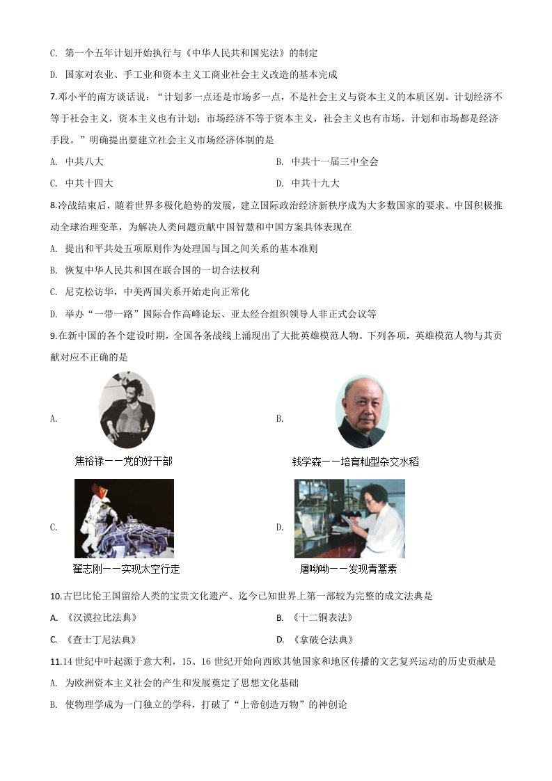 四川省广安市2020年中考历史试题(空白卷)_共6页