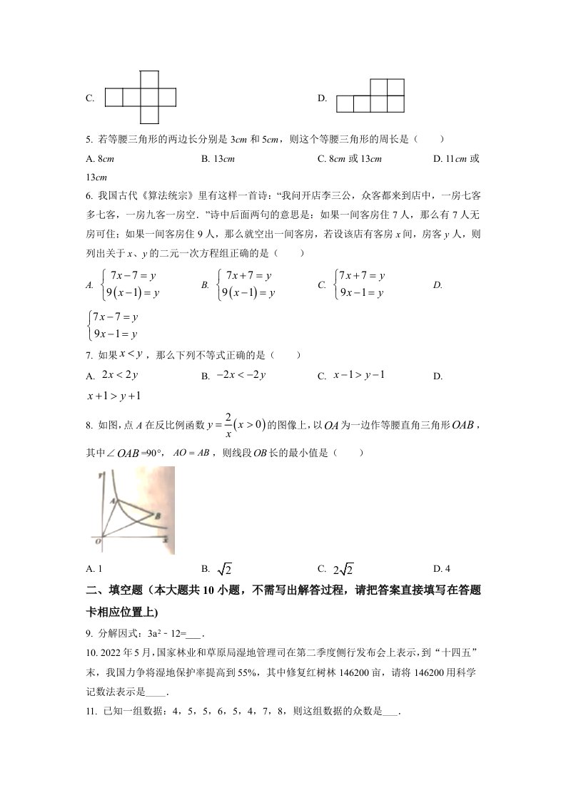 当前位置: 首页初中资源中考真题正文 2022年江苏省宿迁市中考数学真题(空白卷)_共6页 中考真题 2 周前 0 0 5 以上为部分内容预览,如需源文档请登录您的会员账号进行下载! 声明:本站所有文章,如无特殊说明或标注,均为本站原创发布。任何个人或组织,在未征得本站同意时,禁止复制、盗用、采集、发布本站内容到任何网站、书籍等各类媒体平台。如若本站内容侵犯了原著者的合法权益,可联系我们进行处理。 尚学资源永久会员 打赏 收藏 海报 链接