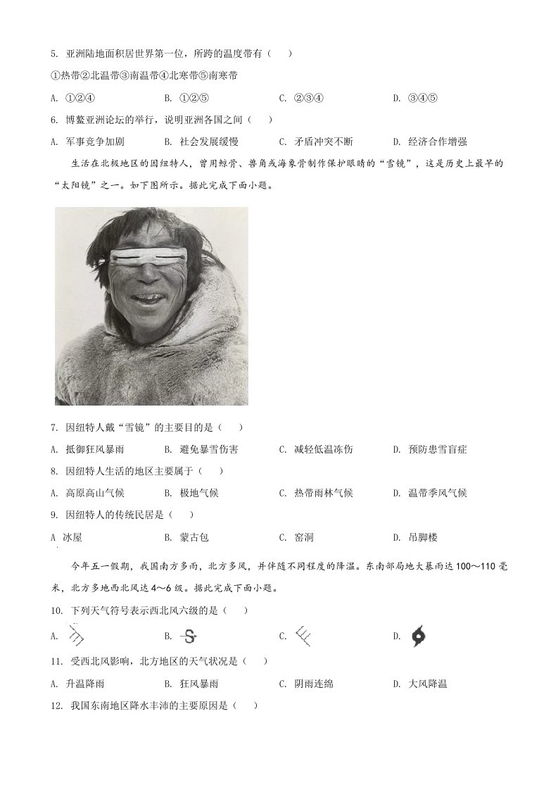 2022年山西省太原市中考地理真题(空白卷)_共9页
