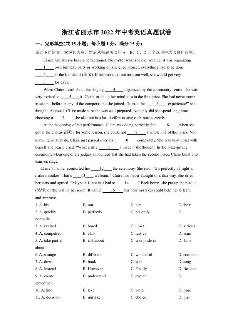 当前位置: 首页初中资源中考真题正文 2022年浙江省丽水市中考英语真题(含答案)_共19页 中考真题 2 周前 0 0 10 以上为部分内容预览,如需源文档请登录您的会员账号进行下载! 声明:本站所有文章,如无特殊说明或标注,均为本站原创发布。任何个人或组织,在未征得本站同意时,禁止复制、盗用、采集、发布本站内容到任何网站、书籍等各类媒体平台。如若本站内容侵犯了原著者的合法权益,可联系我们进行处理。 尚学资源永久会员 打赏 收藏 海报 链接