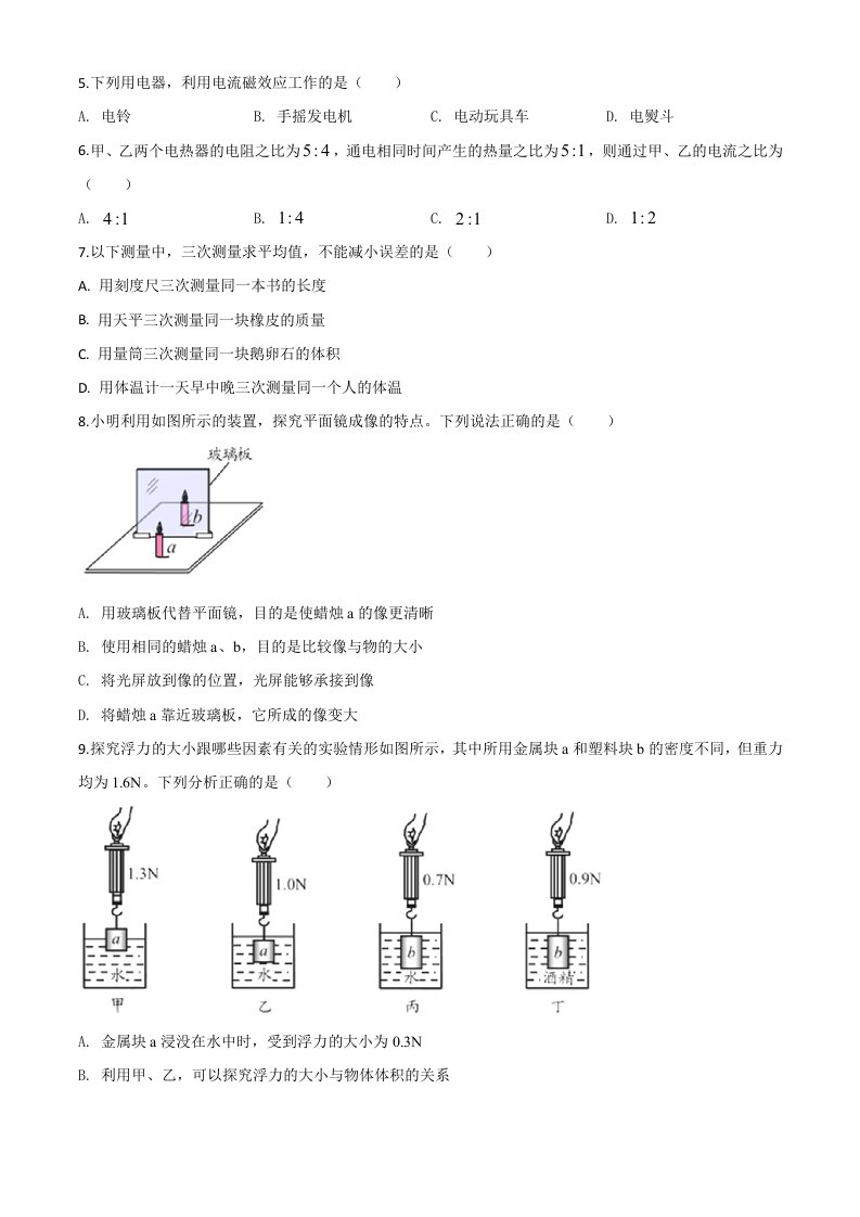 2020年山东省青岛市中考物理试题(空白卷)_共11页