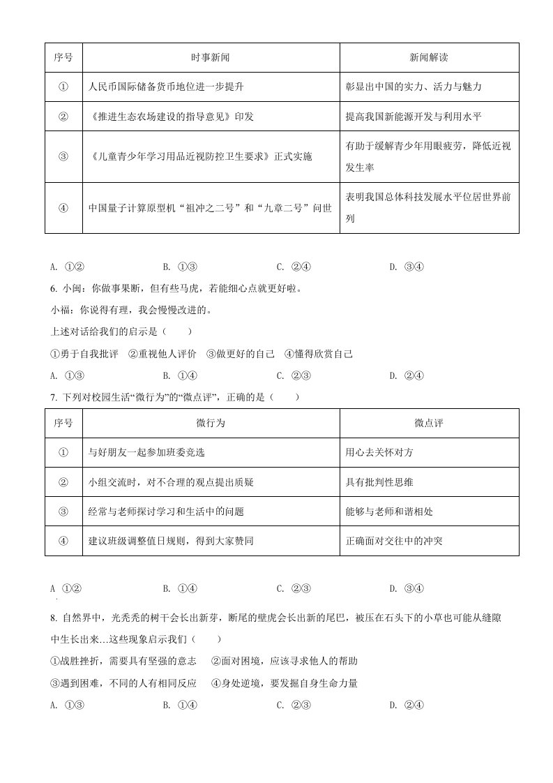 2022年福建省中考道德与法治真题(空白卷)_共9页