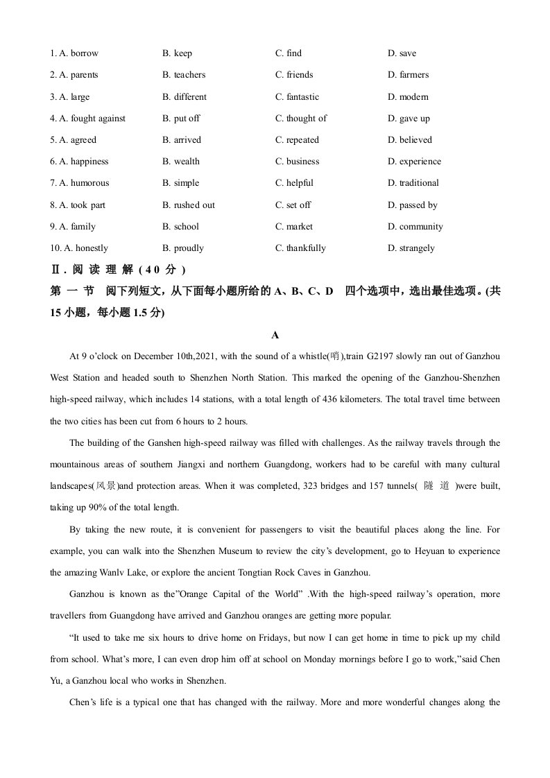 当前位置: 首页初中资源中考真题正文 2022年广东省深圳市中考英语试题(空白卷)_共9页 中考真题 2 周前 0 0 5 以上为部分内容预览,如需源文档请登录您的会员账号进行下载! 声明:本站所有文章,如无特殊说明或标注,均为本站原创发布。任何个人或组织,在未征得本站同意时,禁止复制、盗用、采集、发布本站内容到任何网站、书籍等各类媒体平台。如若本站内容侵犯了原著者的合法权益,可联系我们进行处理。 尚学资源永久会员 打赏 收藏 海报 链接