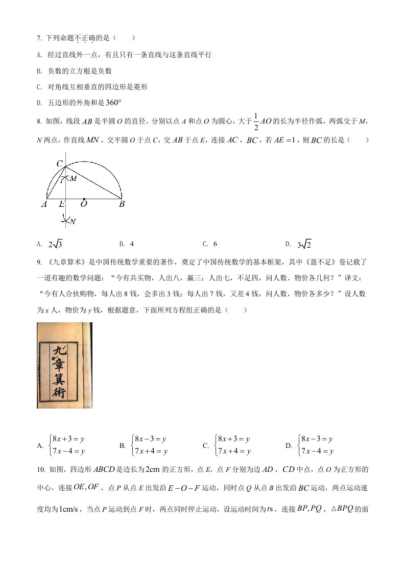 2022年辽宁省盘锦市中考数学真题(空白卷)_共9页