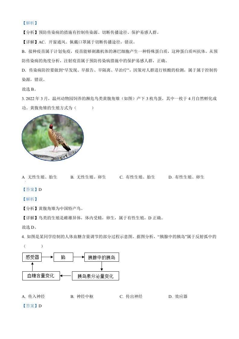 2022年浙江省温州市中考生物真题(含答案)_共9页