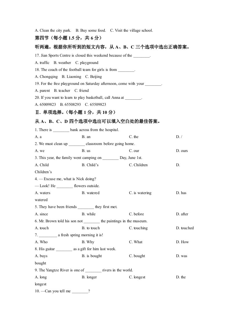 当前位置: 首页初中资源中考真题正文 2022年重庆市中考英语真题(A卷)(空白卷)_共12页 中考真题 2 周前 0 0 10 以上为部分内容预览,如需源文档请登录您的会员账号进行下载! 声明:本站所有文章,如无特殊说明或标注,均为本站原创发布。任何个人或组织,在未征得本站同意时,禁止复制、盗用、采集、发布本站内容到任何网站、书籍等各类媒体平台。如若本站内容侵犯了原著者的合法权益,可联系我们进行处理。 尚学资源永久会员 打赏 收藏 海报 链接