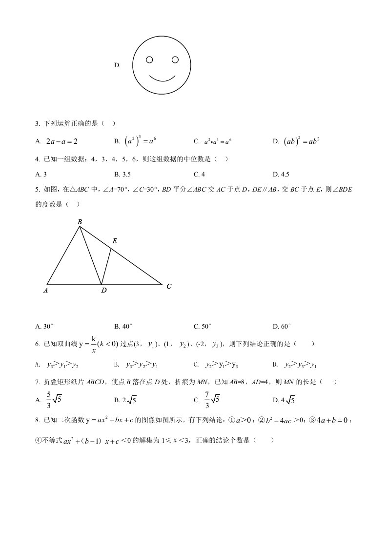 当前位置: 首页初中资源中考真题正文 江苏省宿迁市2021年中考数学真题(空白卷)_共8页 中考真题 2 周前 0 0 5 以上为部分内容预览,如需源文档请登录您的会员账号进行下载! 声明:本站所有文章,如无特殊说明或标注,均为本站原创发布。任何个人或组织,在未征得本站同意时,禁止复制、盗用、采集、发布本站内容到任何网站、书籍等各类媒体平台。如若本站内容侵犯了原著者的合法权益,可联系我们进行处理。 尚学资源永久会员 打赏 收藏 海报 链接