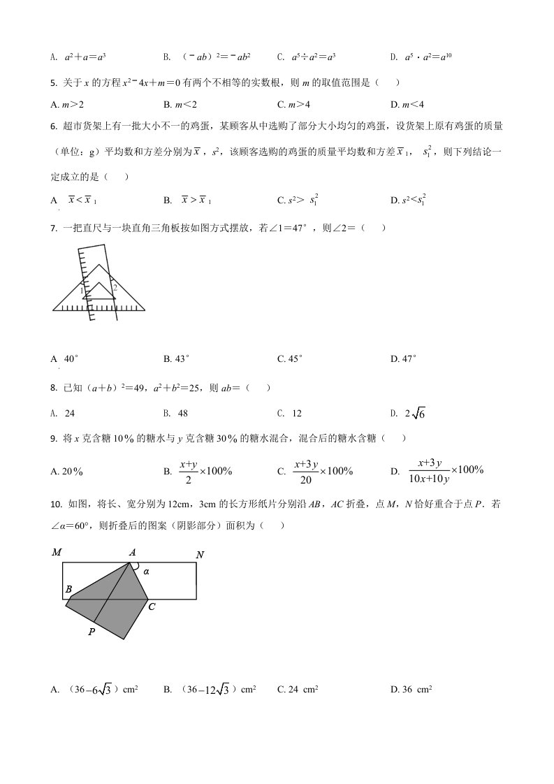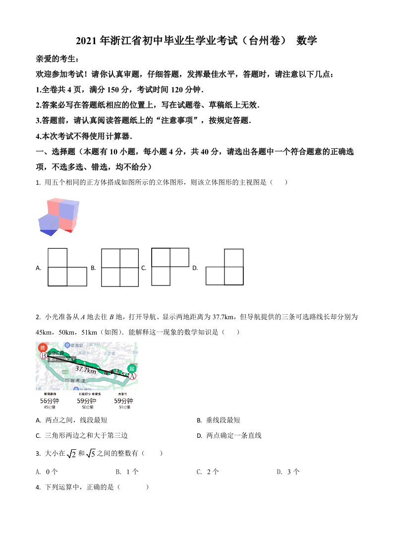 浙江省台州市2021年中考数学真题(空白卷)_共8页