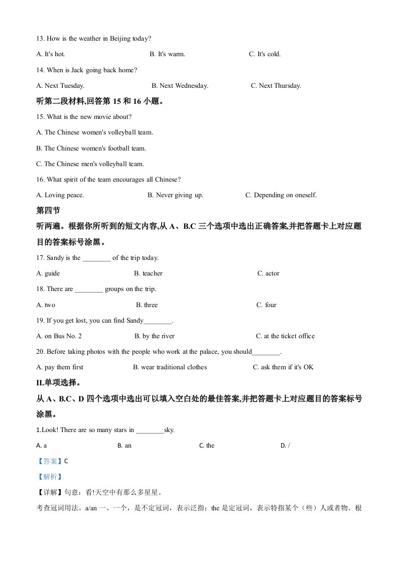 当前位置: 首页初中资源中考真题正文 重庆市2020年中考英语试题(A卷)(含答案)_共24页 中考真题 2 周前 0 0 15 以上为部分内容预览,如需源文档请登录您的会员账号进行下载! 声明:本站所有文章,如无特殊说明或标注,均为本站原创发布。任何个人或组织,在未征得本站同意时,禁止复制、盗用、采集、发布本站内容到任何网站、书籍等各类媒体平台。如若本站内容侵犯了原著者的合法权益,可联系我们进行处理。 尚学资源永久会员 打赏 收藏 海报 链接