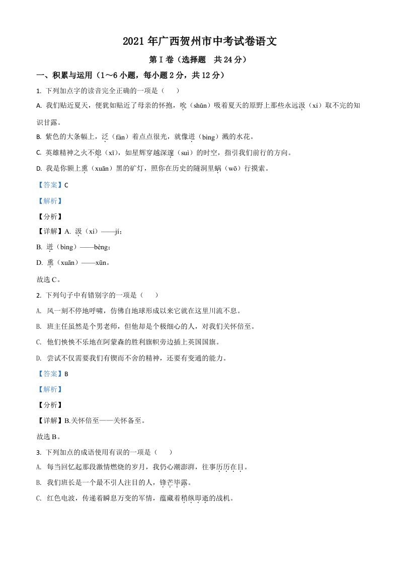 当前位置: 首页初中资源中考真题正文 广西贺州市2021年中考语文试题(含答案)_共19页 中考真题 2 周前 0 0 10 以上为部分内容预览,如需源文档请登录您的会员账号进行下载! 声明:本站所有文章,如无特殊说明或标注,均为本站原创发布。任何个人或组织,在未征得本站同意时,禁止复制、盗用、采集、发布本站内容到任何网站、书籍等各类媒体平台。如若本站内容侵犯了原著者的合法权益,可联系我们进行处理。 尚学资源永久会员 打赏 收藏 海报 链接