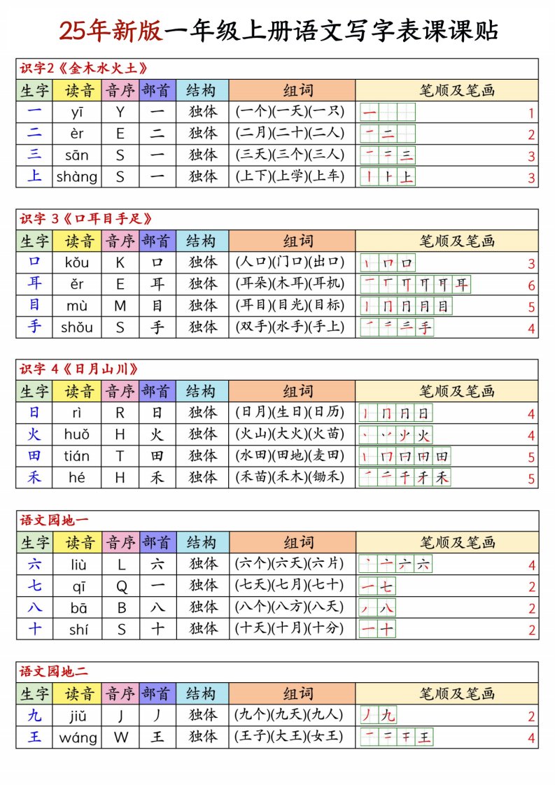当前位置: 首页小学资源小学一年级正文 25新版一上语文写字表生字组词笔顺课课贴6页_共6页 小学一年级 2 周前 0 1 5 以上为部分内容预览,如需源文档请登录您的会员账号进行下载! 声明:本站所有文章,如无特殊说明或标注,均为本站原创发布。任何个人或组织,在未征得本站同意时,禁止复制、盗用、采集、发布本站内容到任何网站、书籍等各类媒体平台。如若本站内容侵犯了原著者的合法权益,可联系我们进行处理。 尚学资源永久会员 打赏 收藏 海报 链接