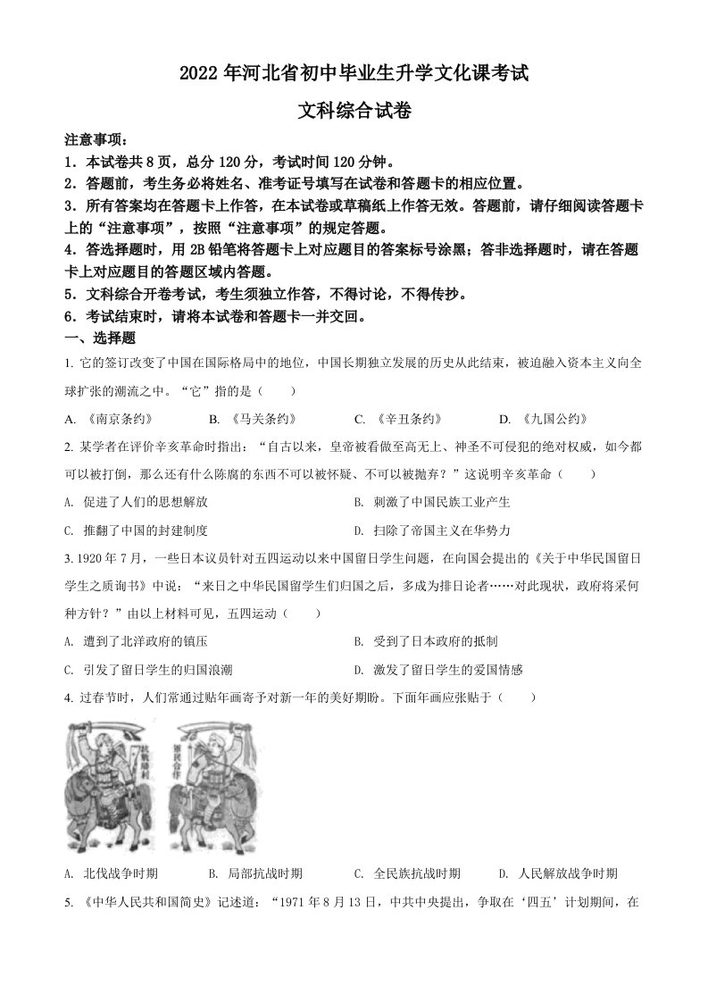 当前位置: 首页初中资源中考真题正文 2022年河北省中考历史真题(空白卷)_共6页 中考真题 2 周前 0 0 5 以上为部分内容预览,如需源文档请登录您的会员账号进行下载! 声明:本站所有文章,如无特殊说明或标注,均为本站原创发布。任何个人或组织,在未征得本站同意时,禁止复制、盗用、采集、发布本站内容到任何网站、书籍等各类媒体平台。如若本站内容侵犯了原著者的合法权益,可联系我们进行处理。 尚学资源永久会员 打赏 收藏 海报 链接
