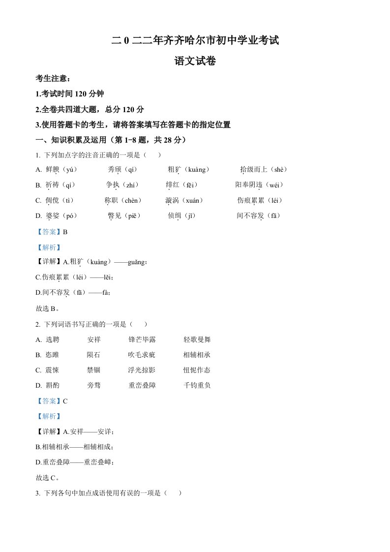 当前位置: 首页初中资源中考真题正文 2022年黑龙江省齐齐哈尔市中考语文真题(含答案)_共19页 中考真题 2 周前 0 0 10 以上为部分内容预览,如需源文档请登录您的会员账号进行下载! 声明:本站所有文章,如无特殊说明或标注,均为本站原创发布。任何个人或组织,在未征得本站同意时,禁止复制、盗用、采集、发布本站内容到任何网站、书籍等各类媒体平台。如若本站内容侵犯了原著者的合法权益,可联系我们进行处理。 尚学资源永久会员 打赏 收藏 海报 链接