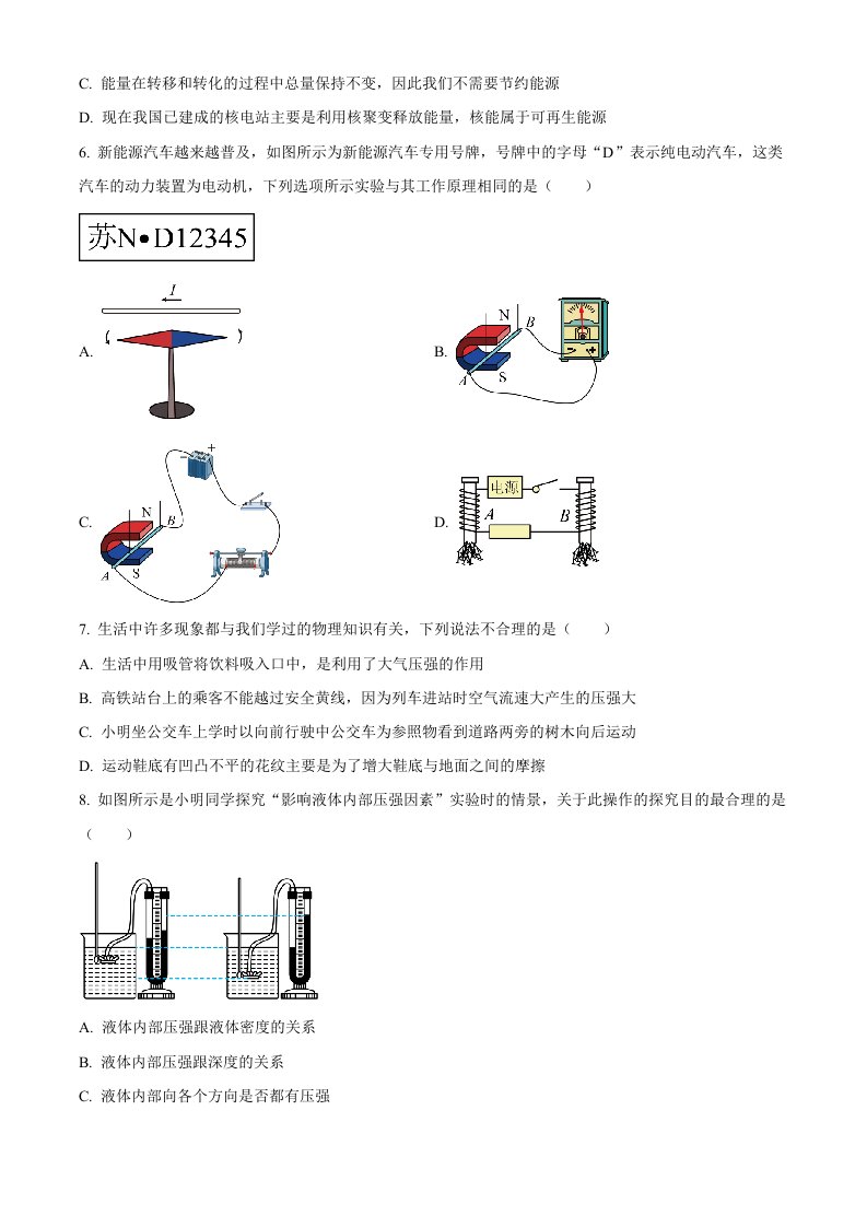 2022年江苏省宿迁市中考物理试题(空白卷)_共10页