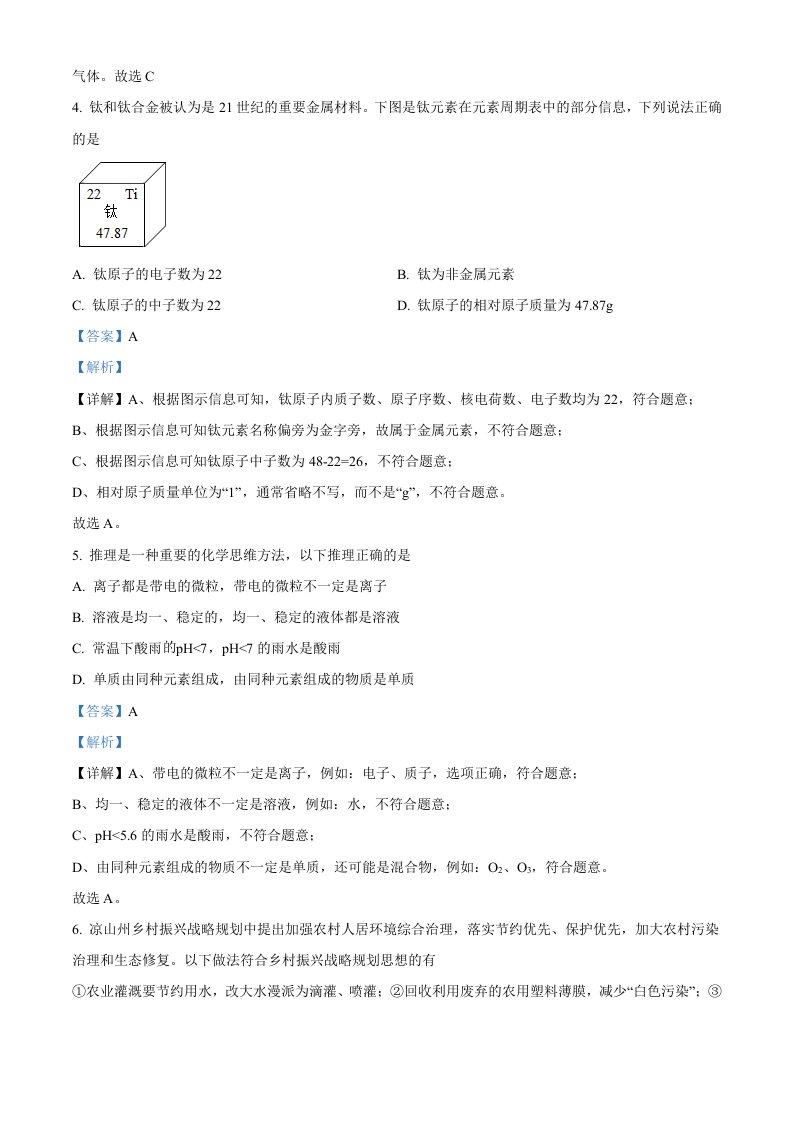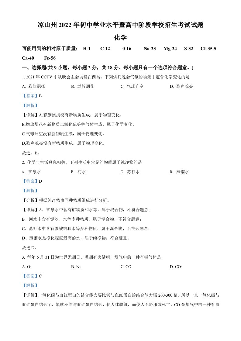 2022年四川省凉山州中考化学真题(含答案)_共12页