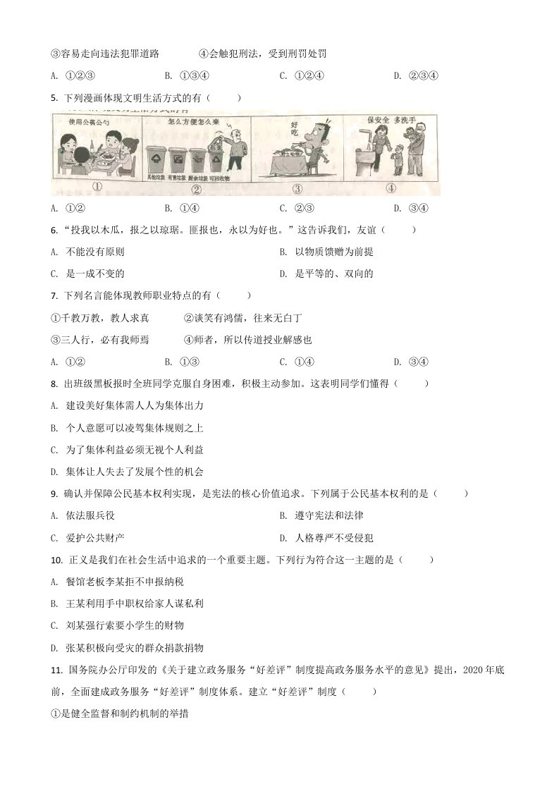 安徽省2020年中考道德与法治试题(空白卷)_共7页