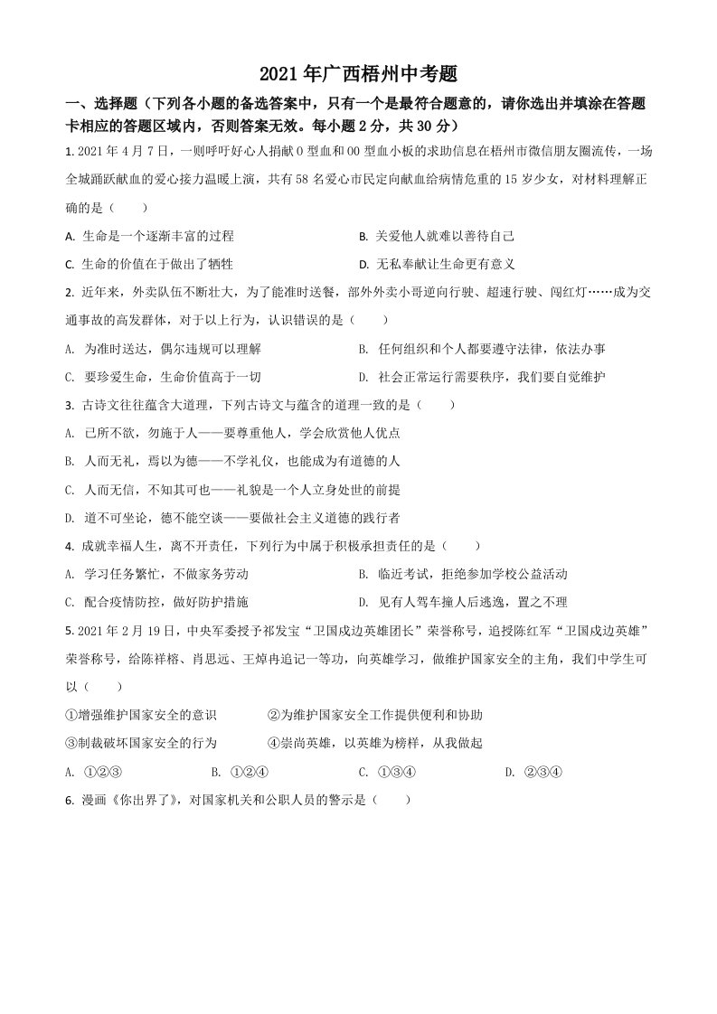 当前位置: 首页初中资源中考真题正文 广西梧州市2021年中考道德与法治真题(空白卷)_共5页 中考真题 2 周前 0 0 5 以上为部分内容预览,如需源文档请登录您的会员账号进行下载! 声明:本站所有文章,如无特殊说明或标注,均为本站原创发布。任何个人或组织,在未征得本站同意时,禁止复制、盗用、采集、发布本站内容到任何网站、书籍等各类媒体平台。如若本站内容侵犯了原著者的合法权益,可联系我们进行处理。 尚学资源永久会员 打赏 收藏 海报 链接