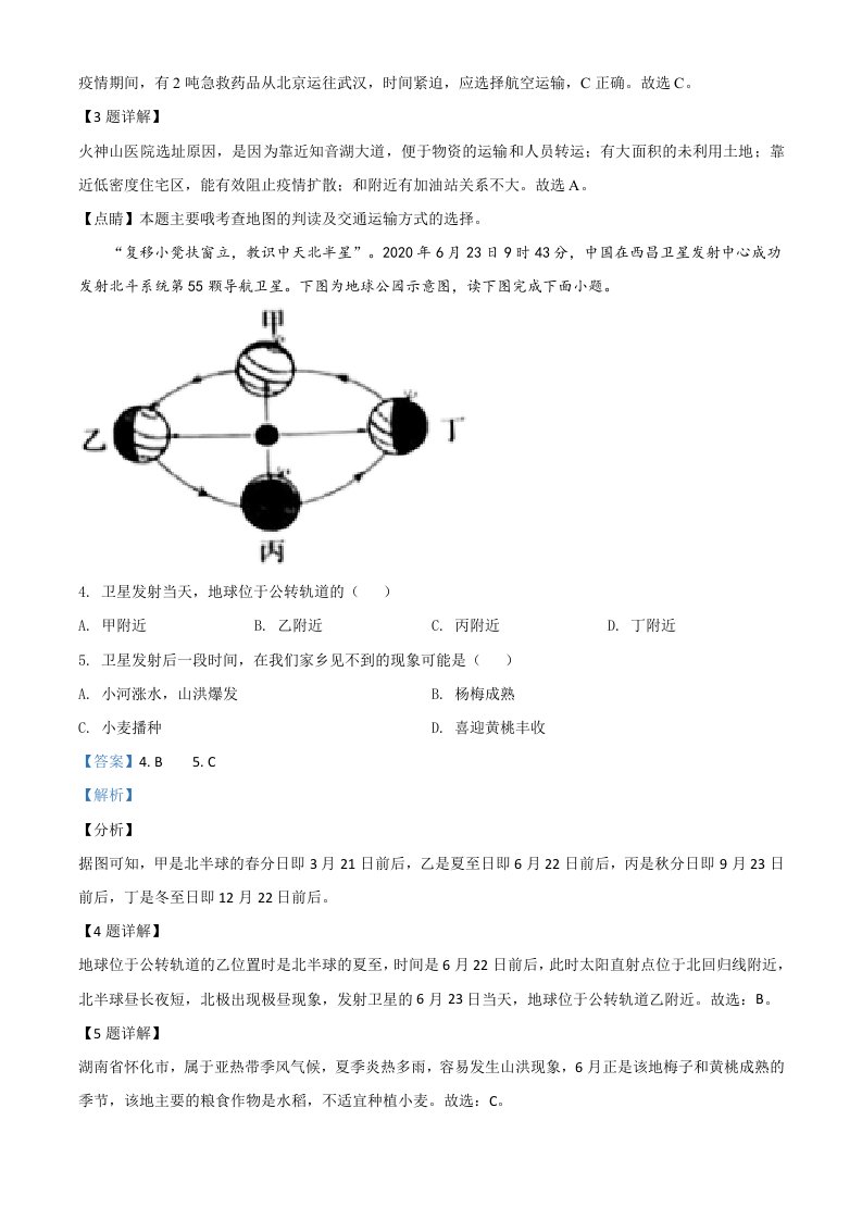 湖南省怀化市2020年毕业会考地理试题(含答案)_共19页