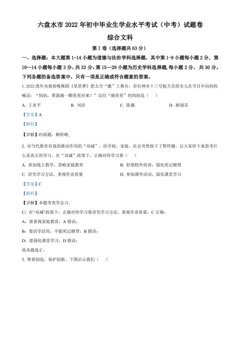 当前位置: 首页初中资源中考真题正文 2022年贵州省六盘水市中考道德与法治真题(含答案)_共13页 中考真题 2 周前 0 0 10 以上为部分内容预览,如需源文档请登录您的会员账号进行下载! 声明:本站所有文章,如无特殊说明或标注,均为本站原创发布。任何个人或组织,在未征得本站同意时,禁止复制、盗用、采集、发布本站内容到任何网站、书籍等各类媒体平台。如若本站内容侵犯了原著者的合法权益,可联系我们进行处理。 尚学资源永久会员 打赏 收藏 海报 链接