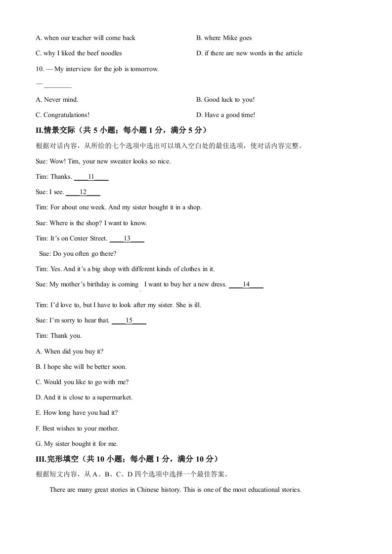 2022年辽宁省鞍山市中考英语真题(空白卷)_共12页