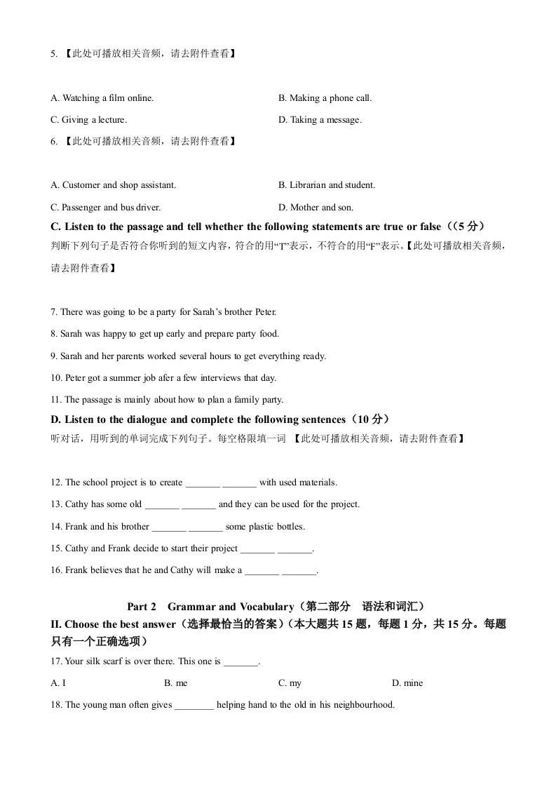 当前位置: 首页初中资源中考真题正文 2022年上海市中考英语真题(空白卷)_共10页 中考真题 2 周前 0 0 5 以上为部分内容预览,如需源文档请登录您的会员账号进行下载! 声明:本站所有文章,如无特殊说明或标注,均为本站原创发布。任何个人或组织,在未征得本站同意时,禁止复制、盗用、采集、发布本站内容到任何网站、书籍等各类媒体平台。如若本站内容侵犯了原著者的合法权益,可联系我们进行处理。 尚学资源永久会员 打赏 收藏 海报 链接