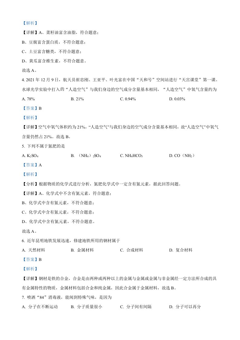 2022年云南省昆明市中考化学真题(含答案)_共20页