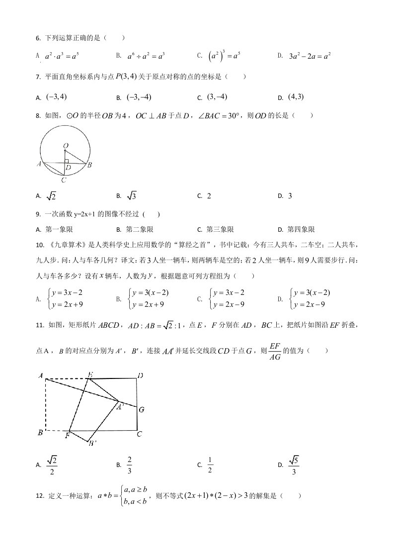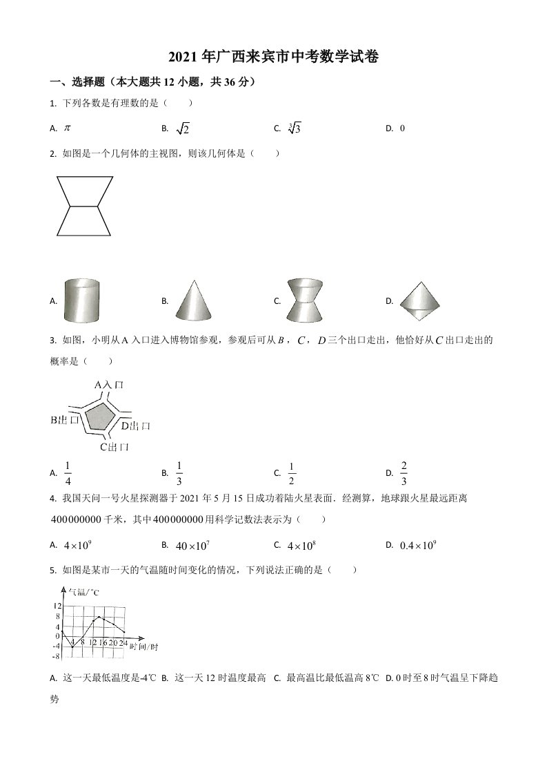 广西来宾市2021年中考数学真题(空白卷)_共8页