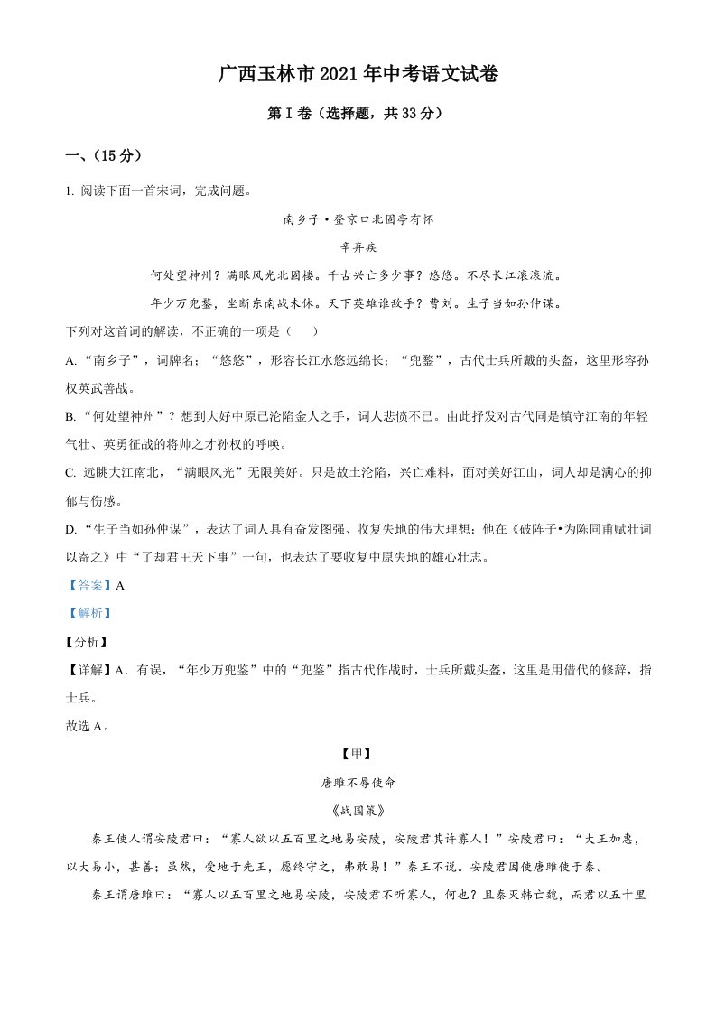 当前位置: 首页初中资源中考真题正文 广西玉林市2021年中考语文真题(含答案)_共20页 中考真题 2 周前 0 0 10 以上为部分内容预览,如需源文档请登录您的会员账号进行下载! 声明:本站所有文章,如无特殊说明或标注,均为本站原创发布。任何个人或组织,在未征得本站同意时,禁止复制、盗用、采集、发布本站内容到任何网站、书籍等各类媒体平台。如若本站内容侵犯了原著者的合法权益,可联系我们进行处理。 尚学资源永久会员 打赏 收藏 海报 链接