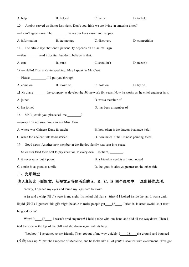 江苏省南通市2020年中考英语试题(空白卷)_共14页