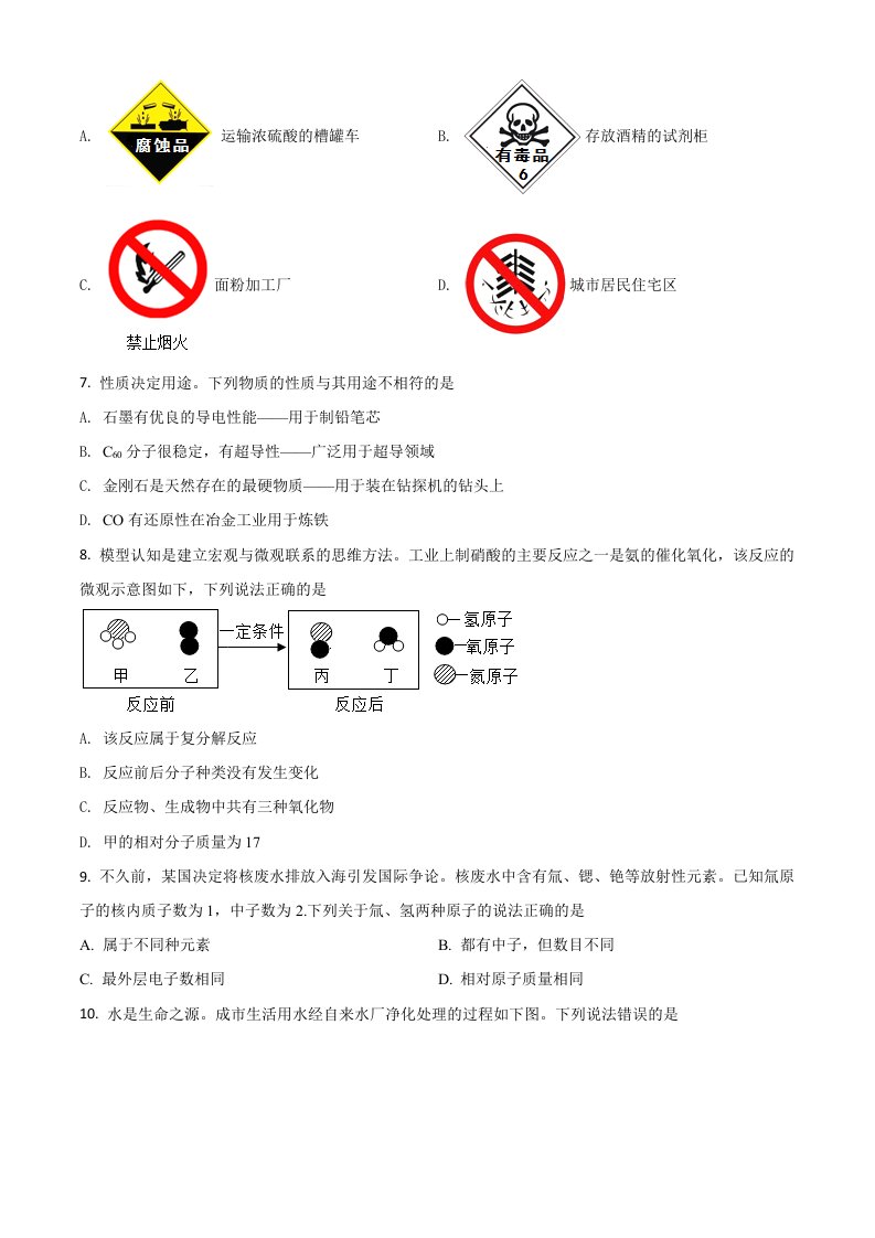 四川省自贡市2021年中考化学试题(空白卷)_共9页