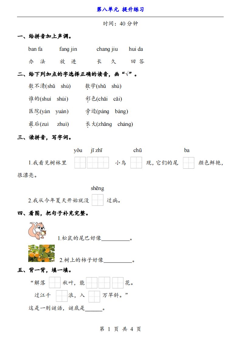 当前位置: 首页小学资源小学一年级正文 新一年级上册语文第八单元提升练习4页_共4页 小学一年级 2 周前 0 0 5 以上为部分内容预览,如需源文档请登录您的会员账号进行下载! 声明:本站所有文章,如无特殊说明或标注,均为本站原创发布。任何个人或组织,在未征得本站同意时,禁止复制、盗用、采集、发布本站内容到任何网站、书籍等各类媒体平台。如若本站内容侵犯了原著者的合法权益,可联系我们进行处理。 尚学资源永久会员 打赏 收藏 海报 链接