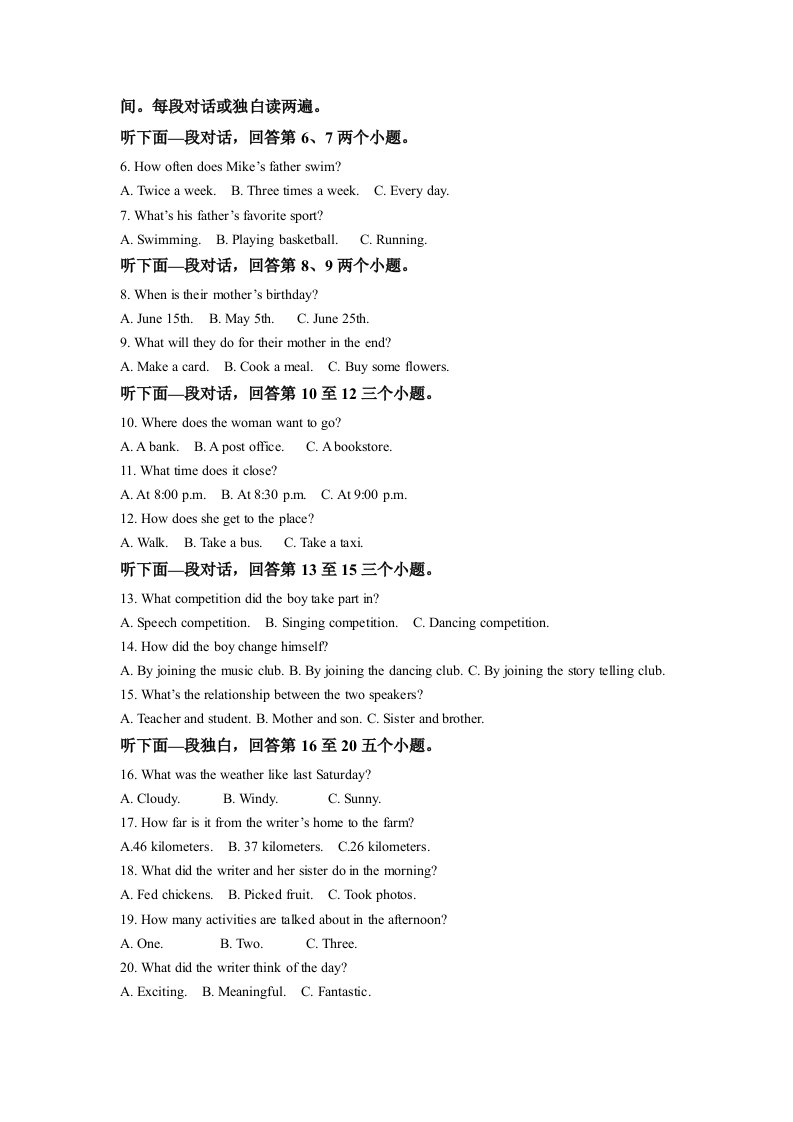 当前位置: 首页初中资源中考真题正文 2022年四川省遂宁市中考英语真题(含答案)_共22页 中考真题 2 周前 0 0 15 以上为部分内容预览,如需源文档请登录您的会员账号进行下载! 声明:本站所有文章,如无特殊说明或标注,均为本站原创发布。任何个人或组织,在未征得本站同意时,禁止复制、盗用、采集、发布本站内容到任何网站、书籍等各类媒体平台。如若本站内容侵犯了原著者的合法权益,可联系我们进行处理。 尚学资源永久会员 打赏 收藏 海报 链接